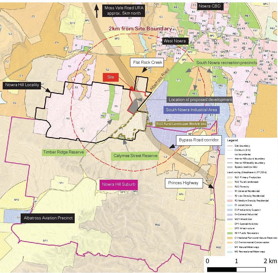 ADW Johnson was initially commissioned to prepare development due diligence and subsequently to provide planning services including a character and visual analysis for land at Nowra Hill. The in-depth analysis providing an evidence based understanding of the site’s landscape qualities and its capacity to accommodate future development in a rural setting. An assessment of the proposal against the character involved a combination of GIS mapping, field photography, and a review of statutory and strategic planning frameworks. Recommendations for landscape setbacks and fencing was incorporated into a modified design.